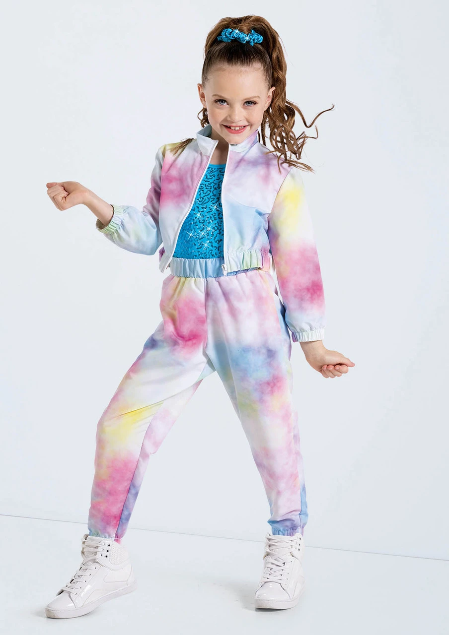 -Attached pastel tie-dye print joggers with built-in spandex briefs