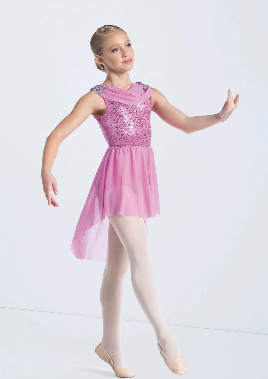 -Sequin spandex bodice and power mesh cowl neck